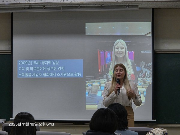 【청주일보】 이성기 기자 = 스웨덴 살라(Sala)시의 최연소 여성 시장, 아만다 린블라드(34)시장이 한국교육대학교에서 열린 ‘이태석 리더십 특강’에 참석해 자신의 정치 여정과 리더십 철학을 전했다.