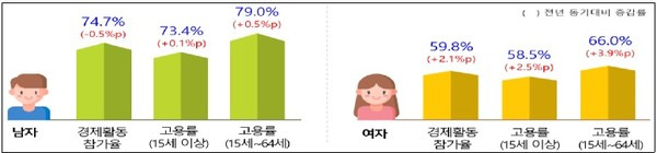여성 고용률은 전년 대비 2.5%p 상승하며 높은 증가율을 보였다.
