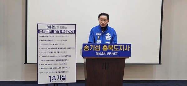 【청주일보】 이성기 기자 = 더불어민주당 충북도지사 예비후보인 송기섭 전 진천군수가 ‘충북발전 10대 국정과제’를 공식 제안하며 자신을 “대통령의 국정 철학을 가장 잘 이해하는 행정가”라고 내세웠다.